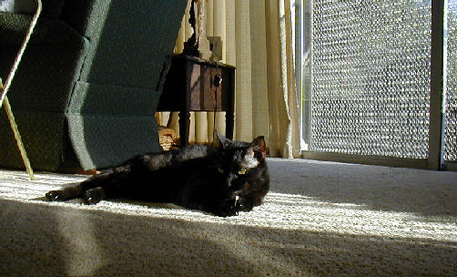 Duke enjoys a spot of sun. Our cats are indoor cats, yet they have full lives!