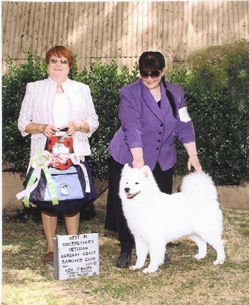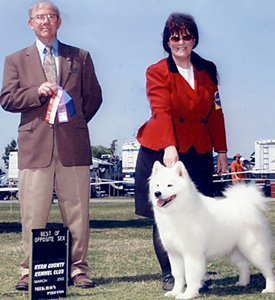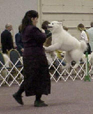 Holly is now 11 years of age and at age 10 1/2 and already an AKC Champion, CGC and HIC, came out of retirement and took a Mexican vacation with me. She finished her Mexican and FCI International Championships in 4 shows with 4 Bests of Breed and two Group wins, owner-breeder handled by me. Unknown to me at the time, this achievement ranked her as the #1 Samoyed in Mexico.