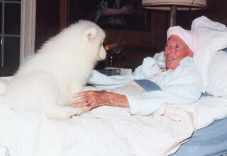 Max made us smile every day with his antics and fun-loving nature. Max had a few points towards his championship, but he really didn't care for dog shows, so where he shined his brightest was as the constant and adored companion of Terri Burke. Terri works for the Santa Barbara Sheriff's Department, and Max was a fixture among all the SBSO employees and K-9 dogs. He was also a star as a therapy dog, and brought great joy with his soft and gentle nature to the lives of people who are hospitalized and disabled. Max loved children and always went out of his way to get acquainted with them every chance he got. He enjoyed coffee with cream (whenever he could steal it from Terri's cup), grooming his cats, and making new friends.